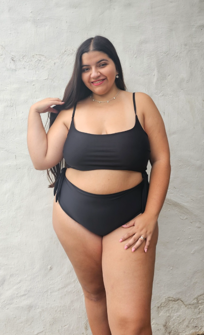 Bombacha tiro alto de tricot con filtro UV lisa ultra vedetina, de siendo unica exclusivo de la marca. Bombacha Integramente forrada. Los modelos Clivia se convierten en enteriza o 2 pieza, ya que tiene un agujero de cada lateral para atarlo a la bombacha e incluye 1 lazo junto a cada pieza, para que puedas hacer el match.