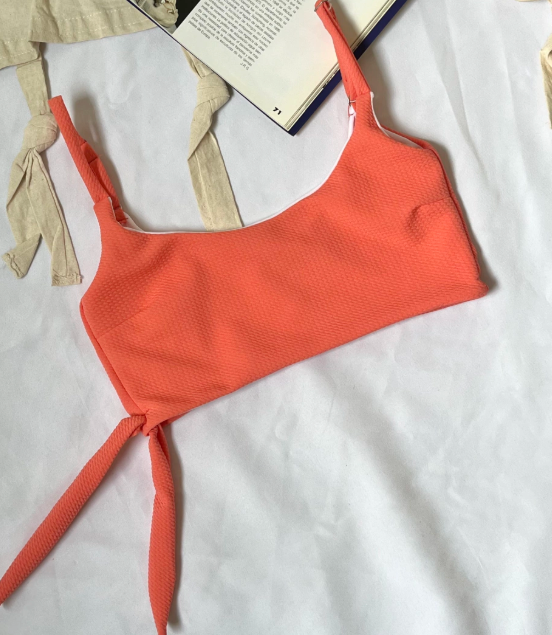 diseñada para brindarte versatilidad y comodidad. Este conjunto destaca por su bombacha tiro alto estampada y su corpiño liso con textura, ambas piezas confeccionadas en tricot con filtro UV50, protegiéndote del sol.