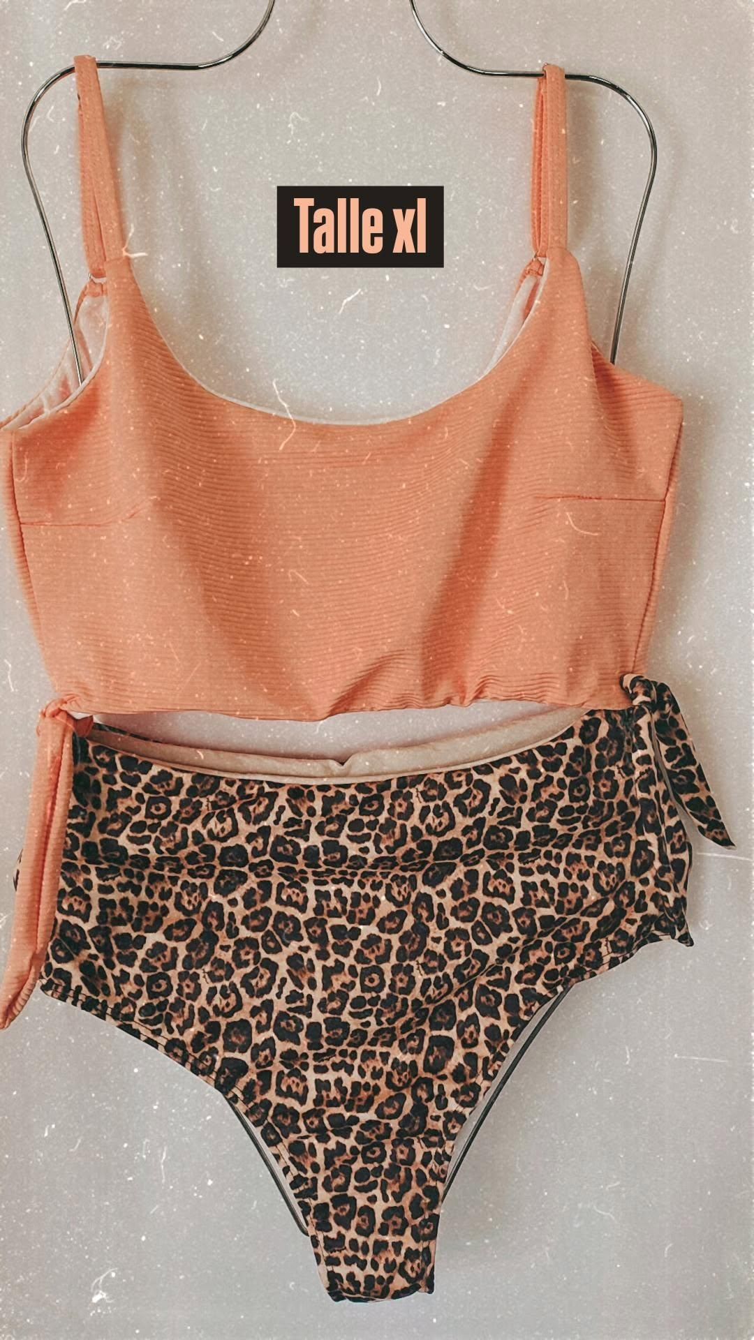 Clivia, una prenda única y exclusiva .diseñada para brindarte versatilidad y comodidad. Este conjunto destaca por su bombacha tiro alto estampada y su corpiño liso con textura, ambas piezas confeccionadas en tricot con filtro UV50, protegiéndote del sol.